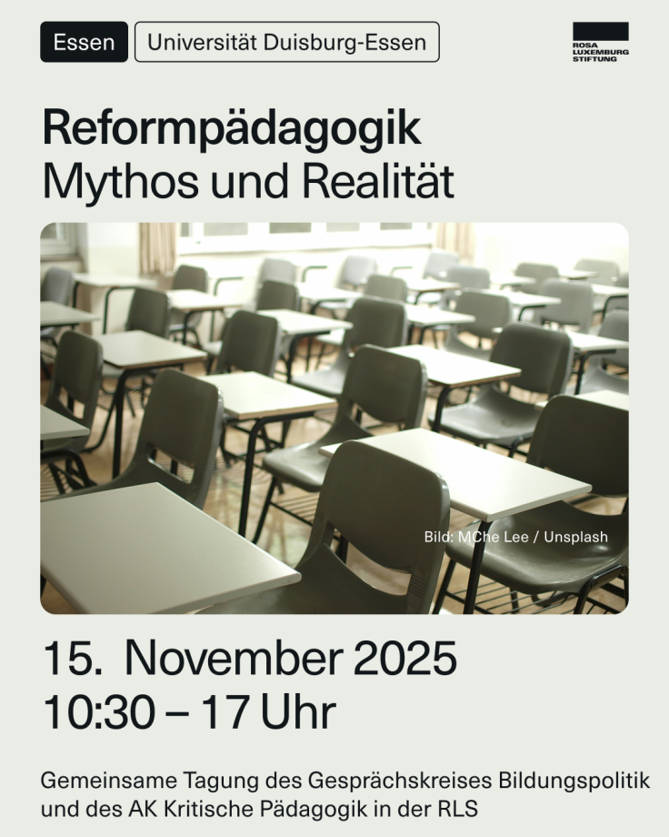 Die Tagung des Gesprächskreises Bildungspolitik und des Arbeitskreises Kritische Pädagogik der Rosa Luxemburg-Stiftung findet am 15.11.2025 von 10.30 Uhr bis 17.00 Uhr in Essen statt.